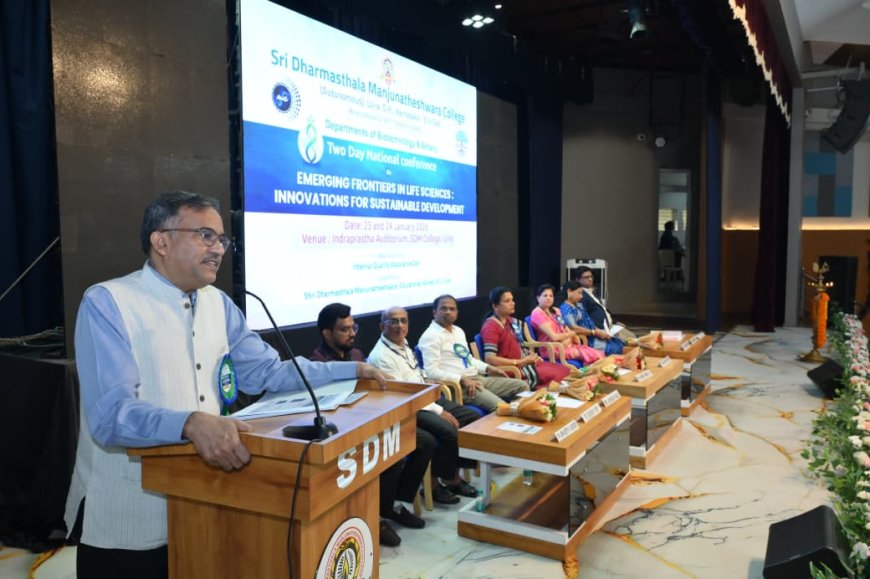 ಉಜಿರೆ : ಉಜಿರೆಯ ಶ್ರೀ ಧರ್ಮಸ್ಥಳ ಮಂಜುನಾಥೇಶ್ವರ (ಸ್ವಾಯತ್ತ) ಪದವಿ ಕಾಲೇಜಿನ ಜೈವತಂತ್ರಜ್ಞಾನ ಮತ್ತು ಸಸ್ಯಶಾಸ್ತ್ರ ವಿಭಾಗ ಹಾಗು ಕಾಲೇಜಿನ ಐಕ್ಯುಎ ಸೆಲ್ ಸಹಯೋಗದಲ್ಲಿ ಕಾಲೇಜಿನ ಇಂದ್ರಪ್ರಸ್ಥ ಸಭಾಂಗಣದಲ್ಲಿ ಆಯೋಜಿರುವ ಎರಡು ದಿನಗಳ 'ಜೀವ ವಿಜ್ಞಾನಗಳ ಉದಯೋನ್ಮುಖ ಗಡಿಗಳು: ಸುಸ್ಥಿರ ಅಭಿವೃದ್ಧಿಗಾಗಿ ನವೀನತೆಗಳು' ( EMERGING FRONTIERS IN LIFE SCIENCE : INNOVATION FOR SUSTAINABLE DEVELOPMENT) ವಿಷಯದ ಎರಡು ದಿನಗಳ ರಾಷ್ಟ್ರೀಯ ವಿಚಾರ ಸಂಕಿರಣಕ್ಕೆ ಚಾಲನೆ ನೀಡಲಾಯಿತು.